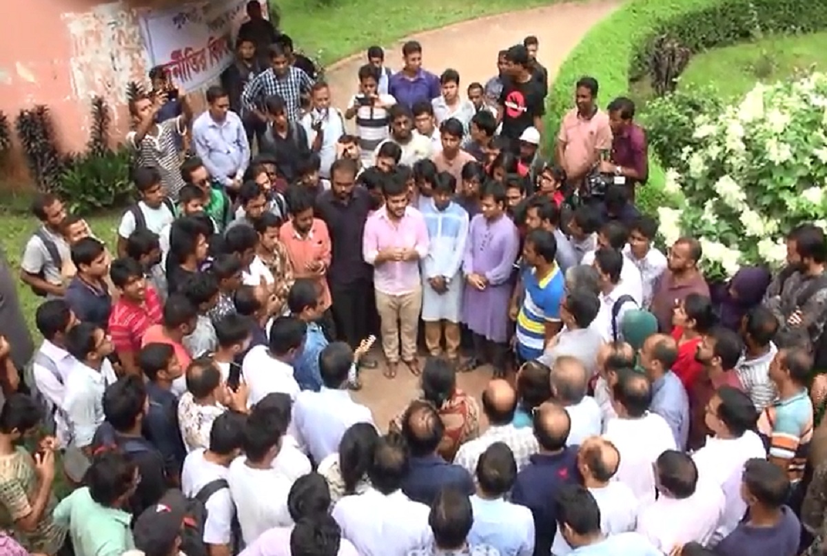 গাছ কেটে হল নির্মাণ বন্ধসহ তিন দফা দাবিতে তৃতীয় দিনের মতো জাহাঙ্গীরনগর বিশ্ববিদ্যালয়ের প্রশাসনিক ভবন অবরোধ করে রেখেছে আন্দোলনকারীরা।