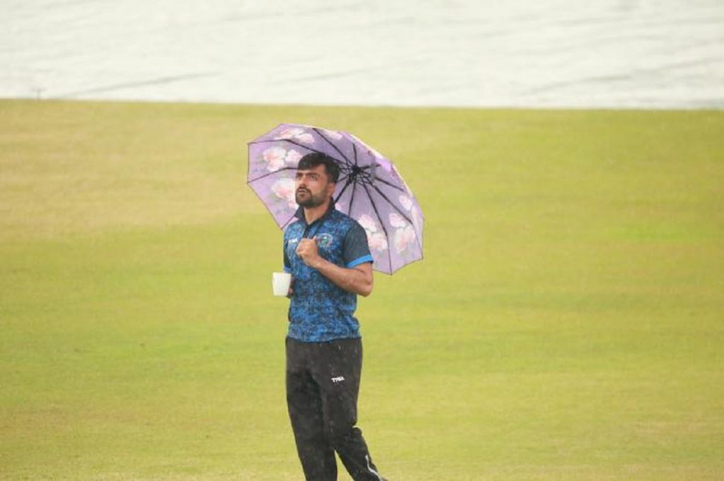 বৃষ্টি এখন বাংলাদেশের জন্য আর্শীবাদ। এদিকে আকাশের দিকে ছাতা মাথায় আফগান অধিনায়ক রশিদ খান। রোববার বিকাল থেকেই চট্টগ্রামের আকাশে গুড়ি গুড়ি বৃষ্টি ছিল। চতুর্থ দিনের প্রায় চার ঘণ্টাই নষ্ট হয়েছে বৃষ্টির কারণে। ৫টা ৪০ পর্যন্ত খেলা হওয়ার কথা থাকলেও অনেক আগেই মাঠ ছাড়তে হয়েছে দুই দলকে।