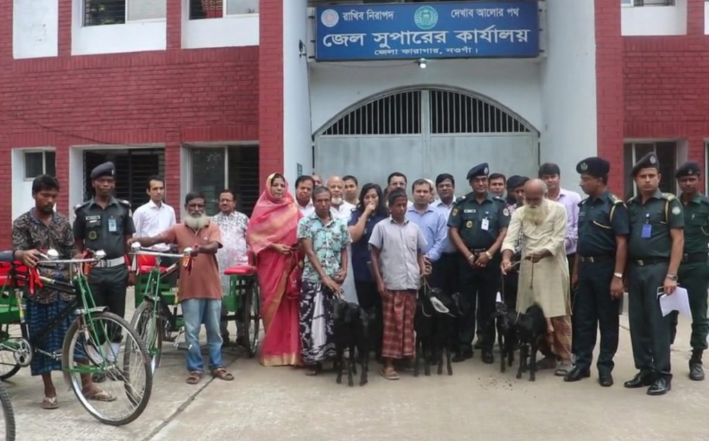 নওগাঁ জেলা কারাগার থেকে মুক্তির সময় ১১ ব্যক্তিকে ভ্যান, রিকশা, ছাগল ও সেলাই মেশিন দেয়া হয়েছে।