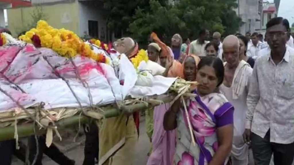 পাড়া-প্রতিবেশীদের সাহায্যে ওই চার গৃহবধূর শাশুড়ির দেহ তোলা হয় খাটে। কিন্তু কাঁধে করে ওই বৃদ্ধার মরদেহ শ্মশানে নিয়ে যাবেন কে? ছেলেরা যে শোকে মূহ্যমান। মায়ের দেহ জড়িয়ে ধরে প্রাণপণে কেঁদে চলেছেন তারা।