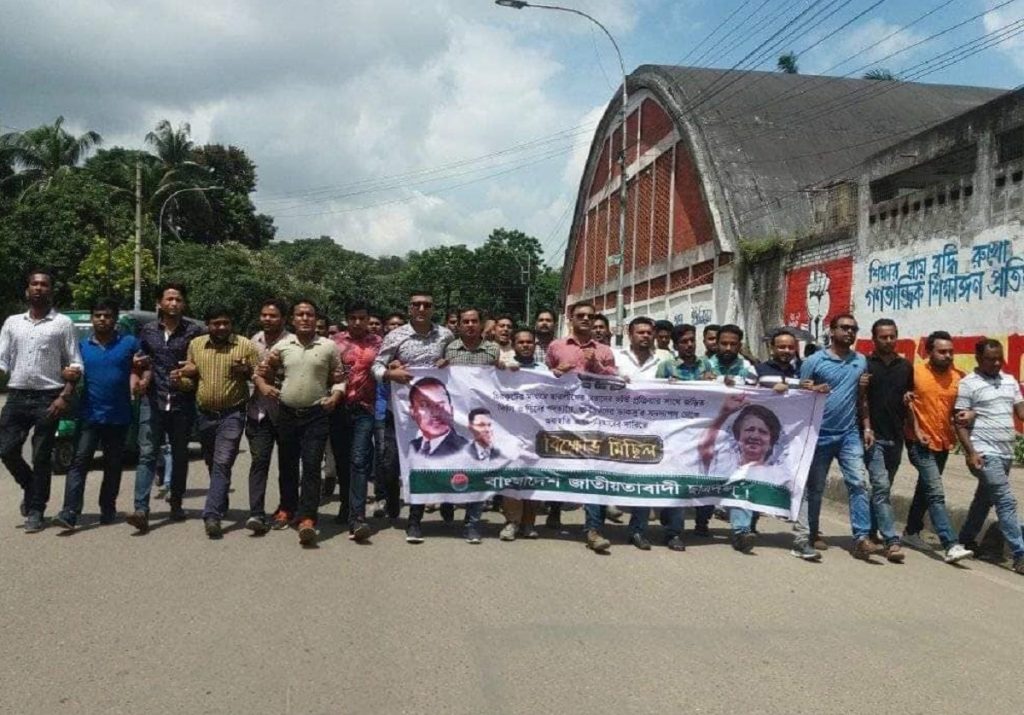 ঢাকা বিশ্ববিদ্যালয় শাখার সভাপতি আল মেহেদী তালুকদারের নেতৃত্বে ক্যাম্পাসে এ বিক্ষোভ মিছিল ও সমাবেশ অনুষ্ঠিত হয়। মিছিলটি রাজু ভাস্তর্যের সামনে থেকে শুরু হয়ে ক্যাম্পাসের বিভিন্ন সড়ক প্রদক্ষিণ শেষে শেখ রাসেল টাওয়ারের সামনে গিয়ে শেষ হয়।