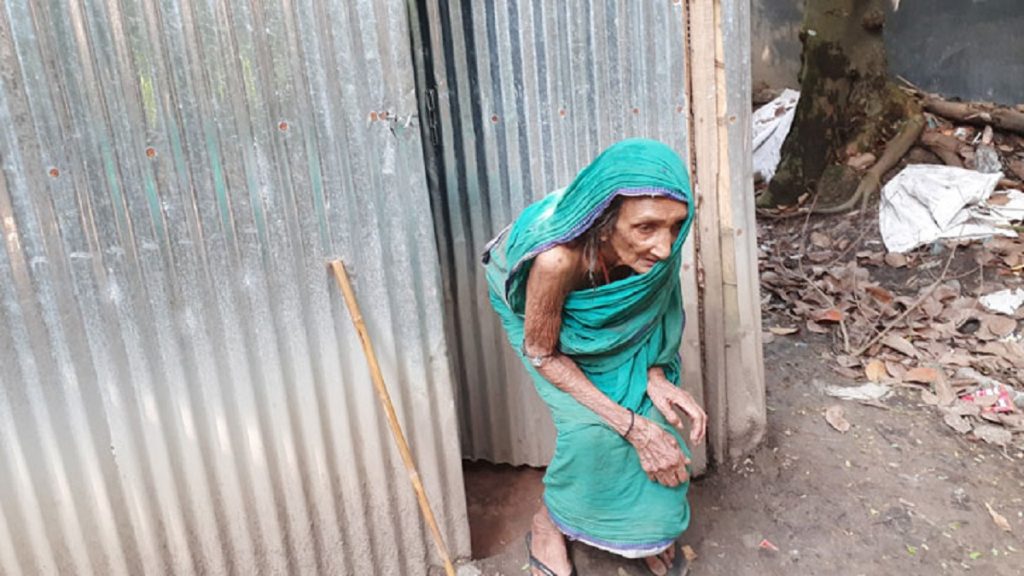 জমি, কাঁচা-পাকা ঘরবাড়ি সবই আছে। বাড়িভর্তি মানুষ, সবার থাকার জন্য ঘরে জায়গা হয়। কিন্তু প্রায় শতবছর বয়সী জন্মদাতা বৃদ্ধার মা সাবিনা খাতুনের জন্য ঘরে জায়গা নেই!