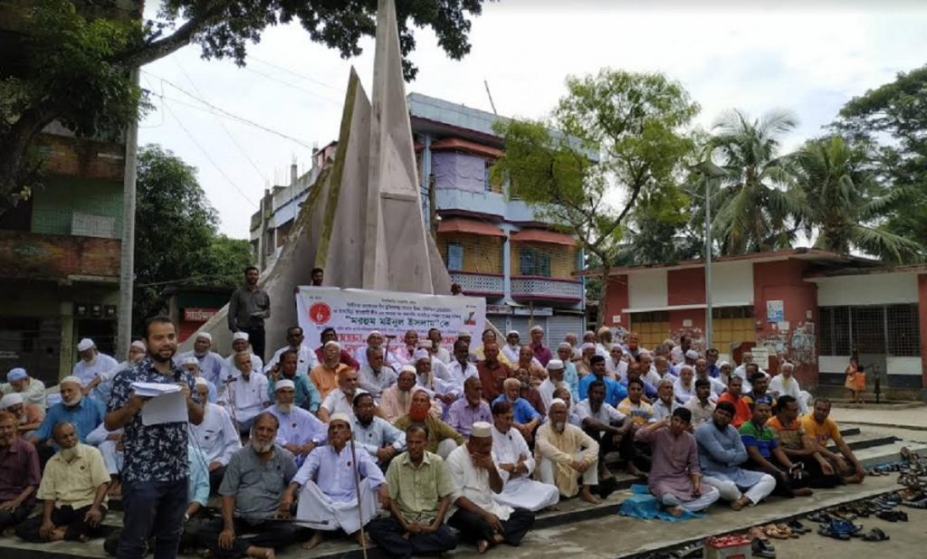 মুক্তিযোদ্ধা ইউনুছ মিয়ার সভাপতিত্বে অনুষ্ঠিত মানববন্ধন প্রতিবাদ সমাবেশে বক্তব্য রাখেন আখাউড়া উপজেলা মুক্তিযোদ্ধা সংসদের সাবেক কমান্ডার রফিকুল ইসলাম ও জমশেদ শাহ, মুক্তিযোদ্ধা ফজলুর রহমান, উপজেলা মুক্তিযোদ্ধা সংসদ সন্তান কমান্ডের নির্বাহী সভাপতি আবুল বাশার প্রমুখ।