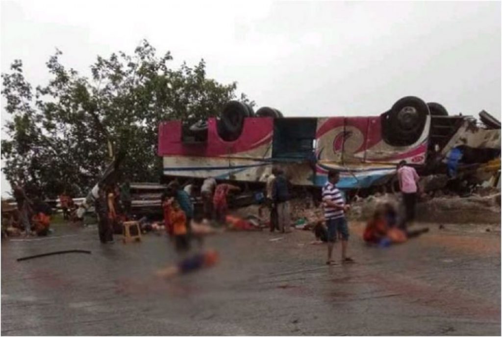 স্থানীয় পুলিশ জানায়, আম্বাজী মন্দির দর্শন শেষে বাড়ির দিকে যাচ্ছিলো ৭০ জন আরোহীকে বহনকারী বিলাসবহুল ব্যক্তিগত বাসটি। ত্রিশুলা ঘাটের কাছে, বৃষ্টিতে পিচ্ছিল পাবর্ত্য রাস্তায় নিয়ন্ত্রণ সামলাতে পারেননি চালক। উল্টে পড়ে সড়কের বিপরীত দিকে। দুটো বুলডোজার, ফায়ার সার্ভিসের সহায়তায় উদ্ধার করা হয় হতাহতদের। হাসপাতালে চিকিৎসা চললেও, ৩৫ জনের অবস্থা আশঙ্কাজনক।