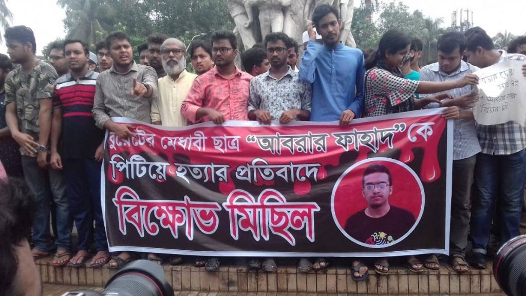 বুয়েটের শিক্ষার্থী আবরার ফাহাদ এর হত্যার বিচারের দাবীতে বিক্ষোভ-সমাবেশ ও মিছিল করছেন ঢাকা বিশ্ববিদ্যালয়ের সাধারণ শিক্ষার্থীরা।