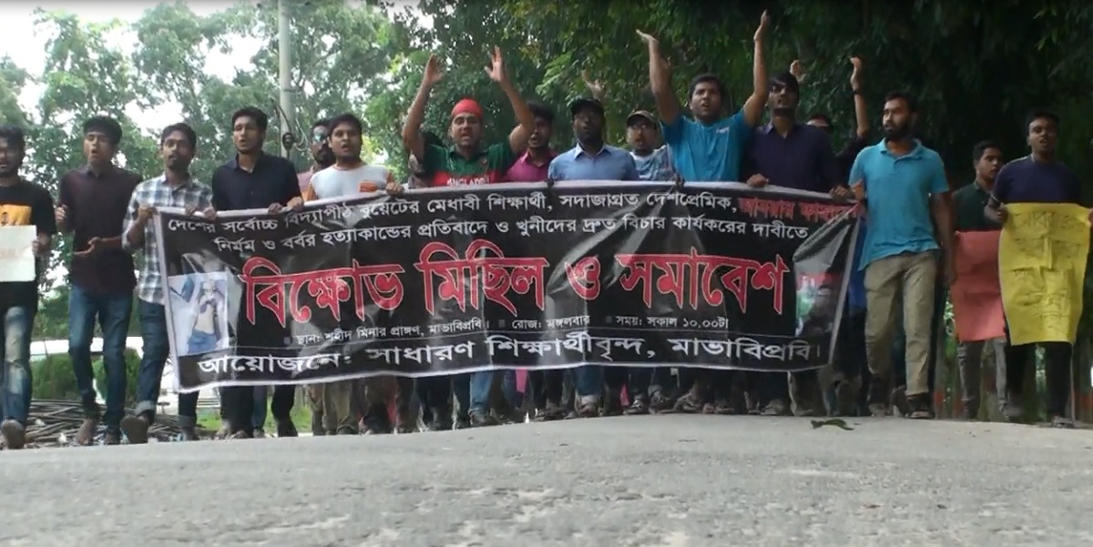 এসময় শিক্ষার্থীরা বুয়েট শিক্ষার্থী আবরার ফাহাদকে পিটিয়ে হত্যা করায় তীব্র প্রতিবাদ জানান। তারা দ্রুততম সময়ের মধ্যে প্রকৃত দোষীদের আইনের আওতায় এনে বিচারের দাবি জানান। অন্যথায় আগামীতে কঠোর আন্দোলনের হুঁশিয়ারি দিয়েছেন তারা।