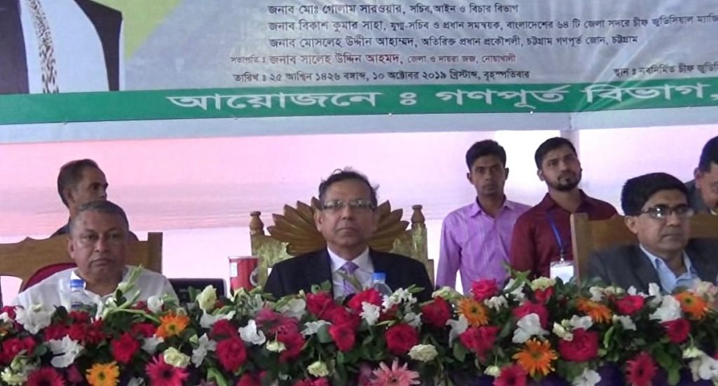 অনুষ্ঠানে নোয়াখালী জেলা ও দায়রা জজ সালেহ উদ্দিনের সভাপতিত্বে অনুষ্ঠানে বিশেষ অতিথি হিসেবে উপস্থিত ছিলেন, নোয়াখালী -৩ আসনের সংসদ সদস্য একরামুল করিম চৌধুরী,নোয়াখালী -৬ আসনের সংসদ সদস্য আয়েশা ফেরদৌস।
