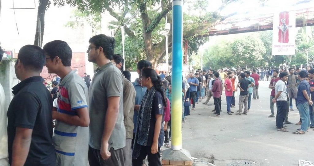 দুপুরের পর থেকেই বৈঠকে অংশগ্রহণ করার জন্য অডিটোরিয়ামে আসতে শুরু করা হয়। বিশাল লাইন দিয়ে শিক্ষার্থীদের প্রবেশ করতে দেখা গেছে।