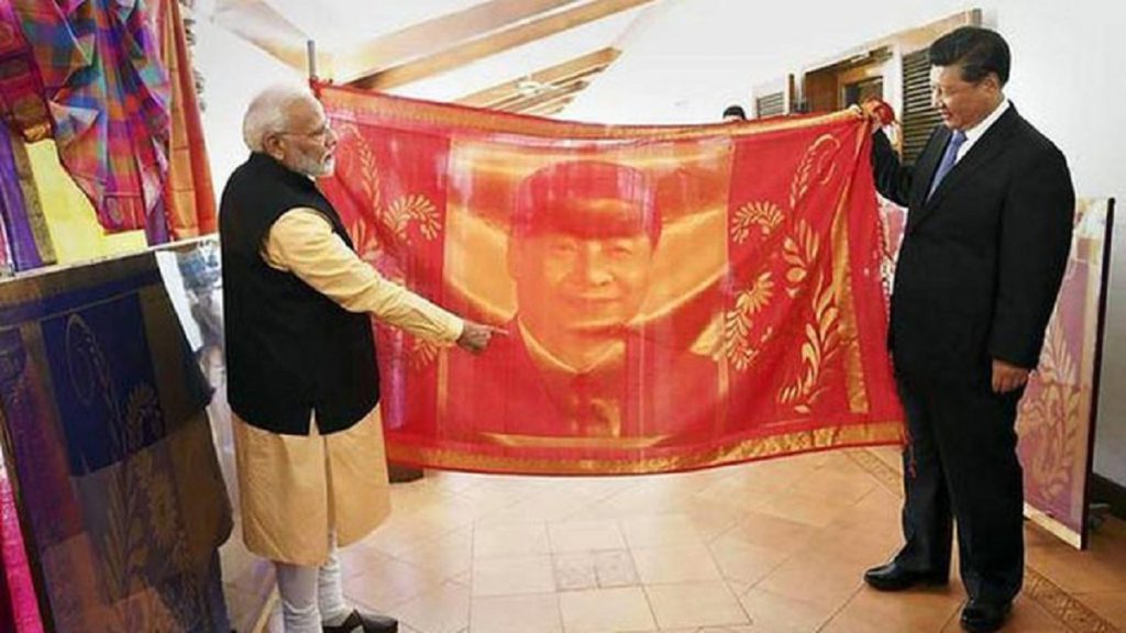 অন্যদিকে, ভারতীয় প্রধানমন্ত্রীকে একটি চীনামাটির ফলক উপহার দিয়েছেন জিনপিং। সেখানে আঁকা আছে মোদির ছবি। দু’দিনের সফরে গত শুক্রবার ভারত যান চীনা প্রেসিডেন্ট। নিজেদের মধ্যে সম্পর্কোন্নয়নের স্বার্থে বিভিন্ন বাণিজ্যিক বিষয়ে আলোচনা করেছেন তারা।
