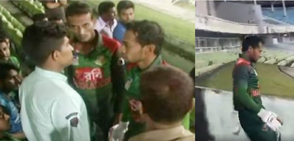মিরপুর শেরেবাংলা স্টেডিয়ামে প্রস্তুতি ম্যাচে বাংলাদেশ লাল দলের হয়ে ব্যাট করছিলেন মুশফিকুর রহিম। সবুজ দলের আরাফাত সানির বলে রিভার্স সুইপ করতে গিয়ে ক্যাচ তুলে দেন তিনি। মাত্র ৪ রান করে আউট হয়ে ফেরার সময় কানে আসলো এক দর্শকের কটূক্তি। তাতে মেজাজ ধরে রাখতে পারেননি মুশফিক।