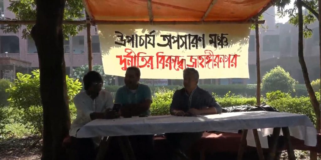 দুর্নীতির বিরুদ্ধে জাহাঙ্গীরনগরের ব্যানারে আজও সর্বাত্মক ধর্মঘট পালন শুরু করেছে ভিসি বিরোধী আন্দোলনরত শিক্ষক-শিক্ষার্থীরা। ভিসির অপসারণ চেয়ে টানা ৫ম দিনের মতো চলছে এ কর্মসূচি। বিকেল ৪টা পর্যন্ত চলবে সর্বাত্মক ধর্মঘট।
