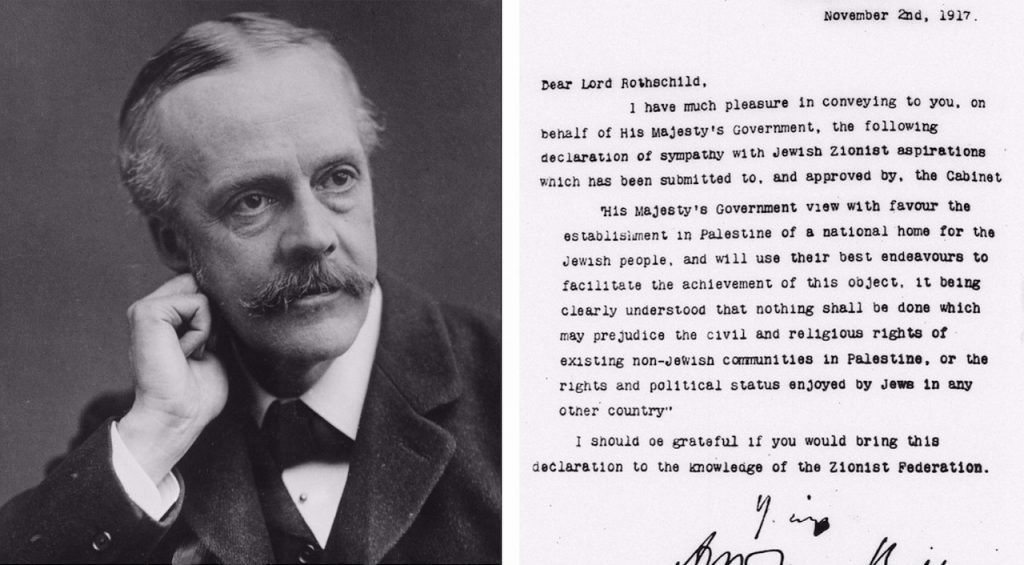 ইতিহাসের পাতায় গুরুত্বপূর্ণ এক দিন ২ নভেম্বর। কারণ, এই দিনে ইতিহাসে বিতর্কিত বেলফোর ঘোষণা দেয়া হয়। ১৯১৭ সালের এ দিনেই তৎকালীন ব্রিটিশ পররাষ্ট্রমন্ত্রী জেমস আর্থার বেলফোর ফিলিস্তিনি ভূখণ্ডে ইহুদিদের জন্য কথিত আবাসভূমি বা রাষ্ট্র প্রতিষ্ঠার পক্ষে ব্রিটেনের অবস্থানের কথা ঘোষণা করেন। ওই ঘোষণা অনুযায়ী ব্রিটেন ফিলিস্তিনে ইহুদিবাদী রাষ্ট্র প্রতিষ্ঠায় সর্বাত্মক প্রচেষ্টার অঙ্গীকার করে। ফিলিস্তিন তখন ছিল ব্রিটিশ উপনিবেশ। এই ঘোষণাকে ফিলিস্তিনিদের দুর্ভোগের সূচনাবিন্দু হিসেবে গণ্য করা হয়।
