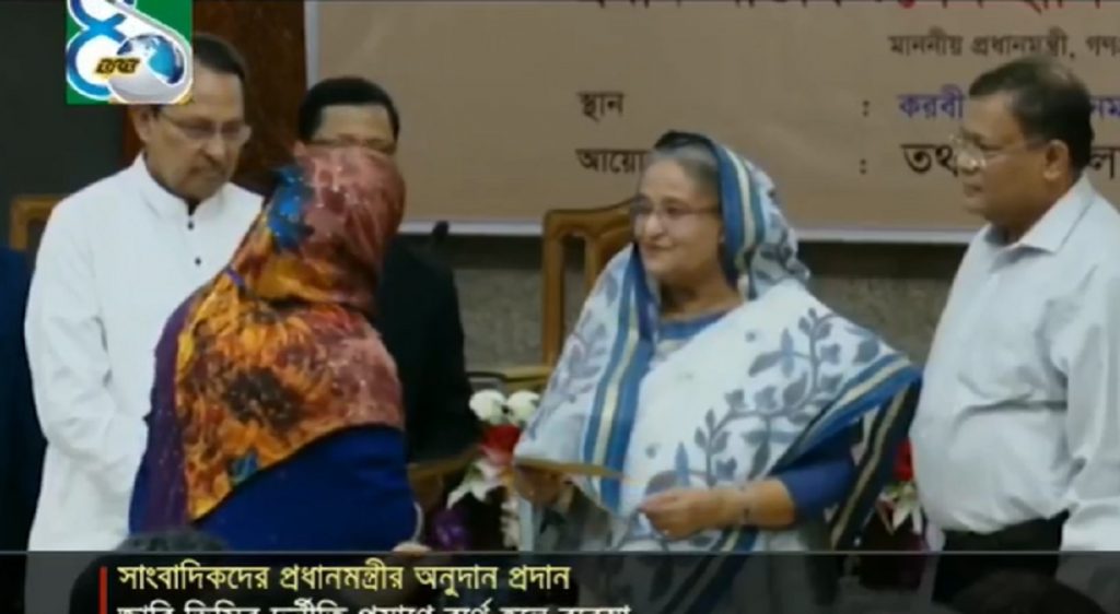 আজ সকালে প্রধানমন্ত্রীর কার্যালয়ের করবী হলে অসুস্থ ও আহত সাংবাদিক এবং নিহত পরিবারের সদস্যদের আর্থিক অনুদান দেয়া হয়।