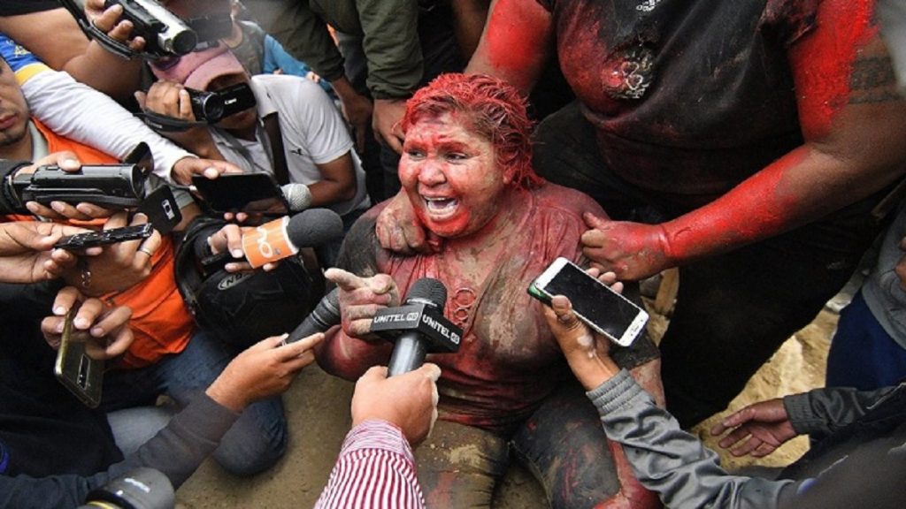 বলিভিয়ার একটি ছোট্ট শহরের নারী মেয়রকে জোর করে ধরে নিয়ে চুল কেটে লাল রঙে ভিজিয়ে নগ্নপায়ে শহরজুড়ে ঘুরিয়েছেন বিক্ষোভকারীরা।