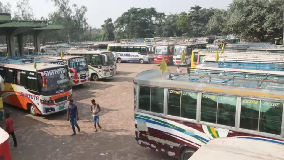 বগুড়া থেকে ২য় দিনের মতো আন্তঃজেলা রুটের বাস চলাচল বন্ধ