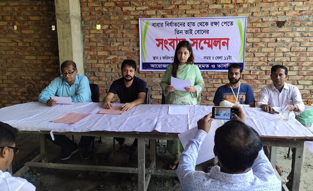 ফরিদপুরে বাবার নির্যাতনের হাত থেকে রক্ষা পেতে সংবাদ সম্মেলন করেছেন তিন ভাই-বোন। তাদের অভিযোগ এই নির্যাতনে সহযোগিতা করছে মাগুরা জেলা গোয়েন্দা পুলিশ। শুক্রবার দুপুরে ফরিদপুর প্রেসক্লাবে এ সংবাদ সম্মেলন অনুষ্ঠিত হয়। সংবাদ সম্মেলনে লিখিত বক্তব্য পাঠ করেন বোন তাসনিম ফারজানা। উপস্থিত ছিলেন তার দুই ভাই বরকত আল আজাদ ও রহমত আল আজাদ।
