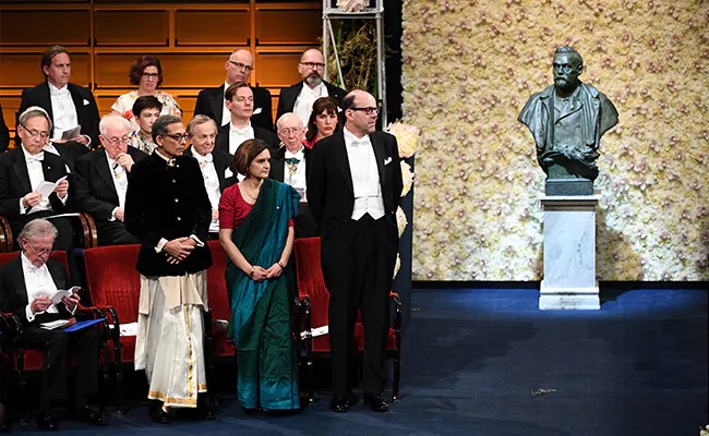 ধুতি-পাঞ্জাবি আর শাড়িতে নোবেল মঞ্চে অভিজিৎ-দুফলো