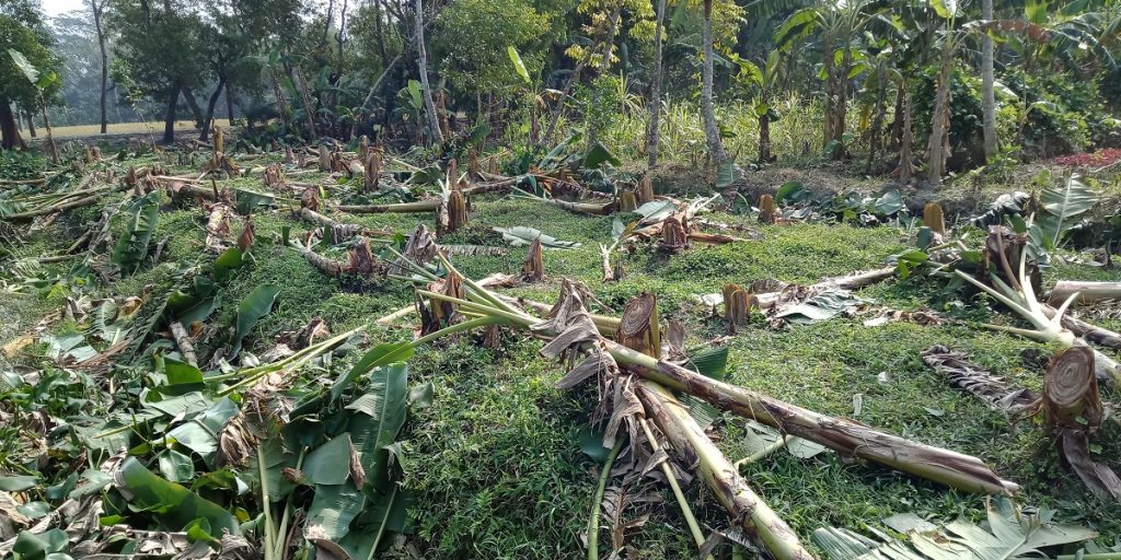 ভূক্তভোগী পিরোজপুর সদর উপজেলার ঝনঝনিয়া গ্রামের ইউনুস সরদার জানান, তার বাবা নূরুজ্জামান সরদার স্থানীয় আবুল কালাম নামের এক ব্যক্তির কাছ থেকে ৭ বছরের জন্য প্রায় ৪০ শতাংশ জমি লিজ নেন। এরপর থেকে তিনি সেখানে বিগত ৩ বছর ধরে কলা চাষ করছেন। হঠাৎ করেই বুধবার বিকেলে একই এলাকার নাসির আকন নামের এক ব্যক্তি তার বাগানের দুই শতাধিক কলা গাছ কেটে ফেলেন। কলাগাছ কাটার বিষয়ে জানতে গেলে তাদের সাথে খারাপ ব্যবহার করেন অভিযুক্ত নাসির বলে অভিযোগ করেন এই ভূক্তভোগী। কিছু দিনের মধ্যেই গাছগুলোতে কলা ধরত বলেও জানান এই কৃষক।