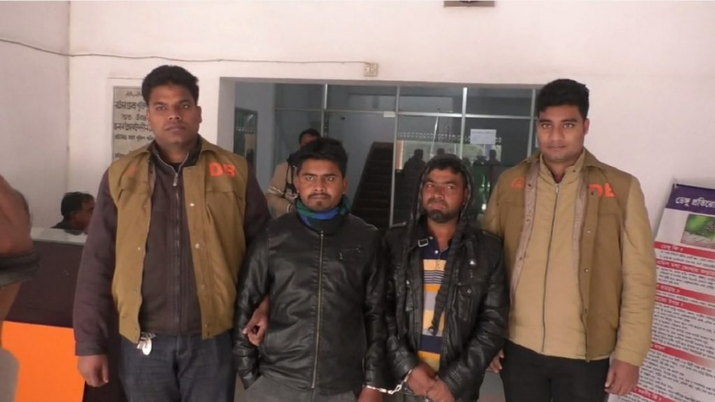 আজ সোমবার দুপুরে আটককৃতদের সাংবাদিকদের সামনে হাজির করা হয়। আটককৃতরা হলেন হয়বতপুর ফয়েজ মোড় এলাকার মৃত মকবুল হোসেনের ছেলে খলিলুর রহমান ও শফিকুল ইসলাম ।