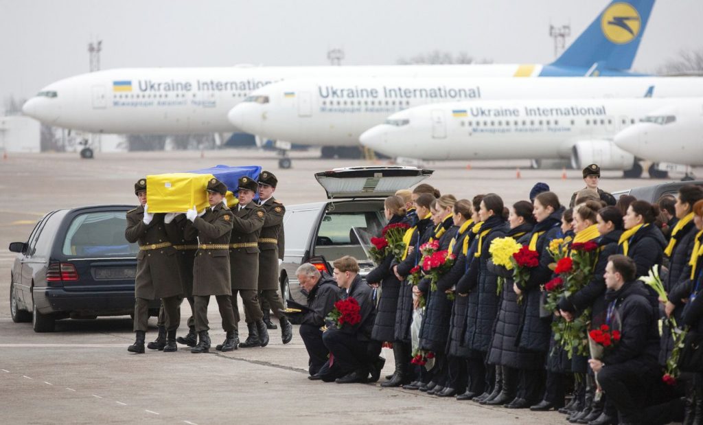 মরদেহের কফিনগুলো কিছু সময়ের জন্য বিমান বন্দরের টার্মিনালে রাখা হয়েছে যেন নিহতদের স্বজন এবং ইউক্রেন এয়ারলাইন্সের সদস্যরা শেষ শ্রদ্ধা জানাতে পারেন। সোমবার শেষকৃত্য অনুষ্ঠিত হবে বলে ধারণা করা হচ্ছে।