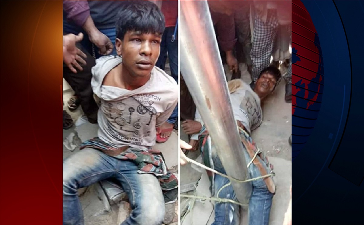 চুরির অভিযোগে ল্যাম্পপোস্টের সাথে বেঁধে নির্যাতন