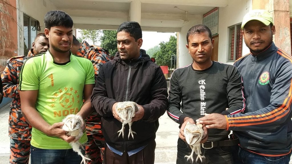 মৌলভীবাজারের কমলগঞ্জের ফায়ার সার্ভিস অফিস থেকে তিনটি লক্ষ্মী পেঁচার বাচ্চা উদ্ধার করেছে বাংলাদেশ বণ্যপ্রানী সেবা ফাউন্ডেশনের কর্মীরা ।