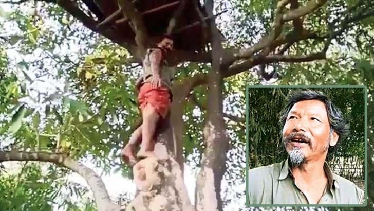 গত ১৩ বছর ধরে গাছের ওপরে বাস করা বিজয়কে গ্রামের মানুষ এখন বনমানুষ বলেই ডাকেন। -খবর আন্দন্দবাজারপত্রিকার