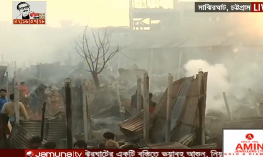 চট্টগ্রামে আগুনে পুড়েছে মাঝিরঘাট বস্তির প্রায় ৪শ’ ঘর। এতে খোলা আকাশের নিচে অবস্থান করছে নারী-শিশুসহ হাজারো মানুষ। আজ সোমবার ভোর ৫টা ১০ মিনিটের দিকে বস্তিতে আগুন লাগে। খবর পেয়ে ঘটনাস্থলে যায় ফায়ার সার্ভিস।