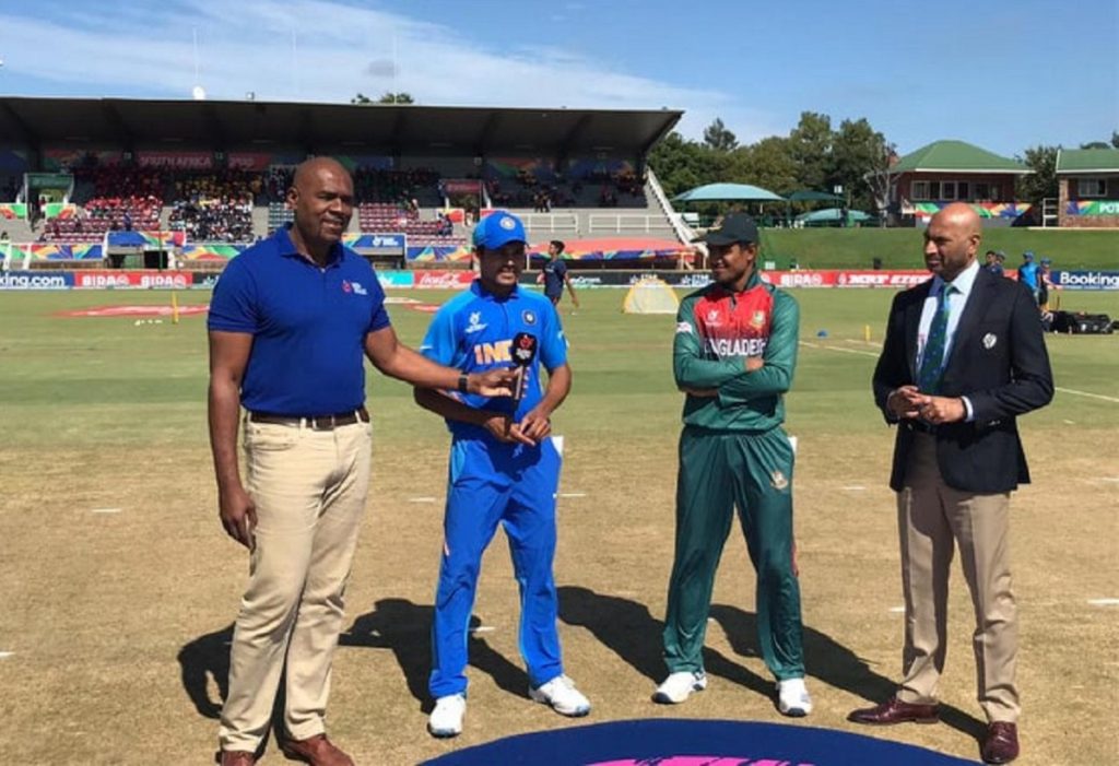বৃষ্টির শঙ্কা মাথায় নিয়েই পচেফস্ট্রুমে শুরু হয়েছে অনূর্ধ্ব-১৯ বিশ্বকাপের ফাইনাল। বাংলাদেশ-ভারত উত্তেজনাকর ম্যাচে টস জিতেছেন বাংলাদেশ অধিনায়ক আকবর আলী। পরে ব্যাট করে ম্যাচ বের করতে দারুণ পারঙ্গম টাইগাররা ফিল্ডিংয়ের সিদ্ধান্ত নিয়েছে।