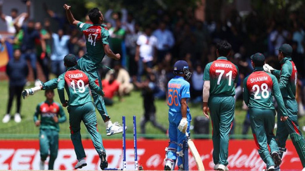 আগে, ম্যাচের প্রথমেই চাপে পড়ে ভারত। ম্যাচের ৭ম ওভারে জুনিয়র টাইগারদের প্রথম আনন্দের উপলক্ষ্য এনে দেন স্পিনার হাসান মুরাদের বদলে দলে আসা পেস অলরাউন্ডার অভিষেক দাস।