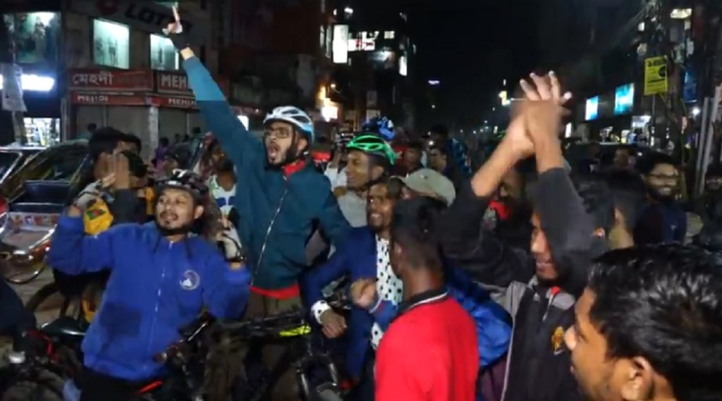 জয় নিশ্চিত হতেই চট্টগ্রামের ক্রিকেটপ্রেমীরা নগরীতে বেরিয়ে পড়েন আনন্দ মিছিল নিয়ে। ক্রিকেটারদের প্রত্যাশা পূরণে দারুণ খুশি সমর্থকরা।