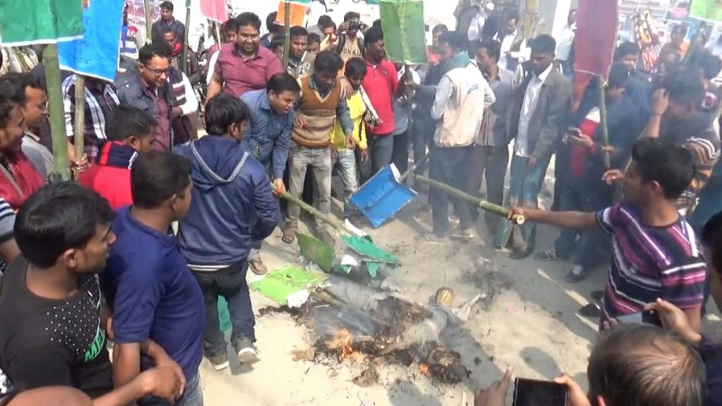 পিআইও নুরুন্নবীর কুশপুত্তলিকা দাহ করে।