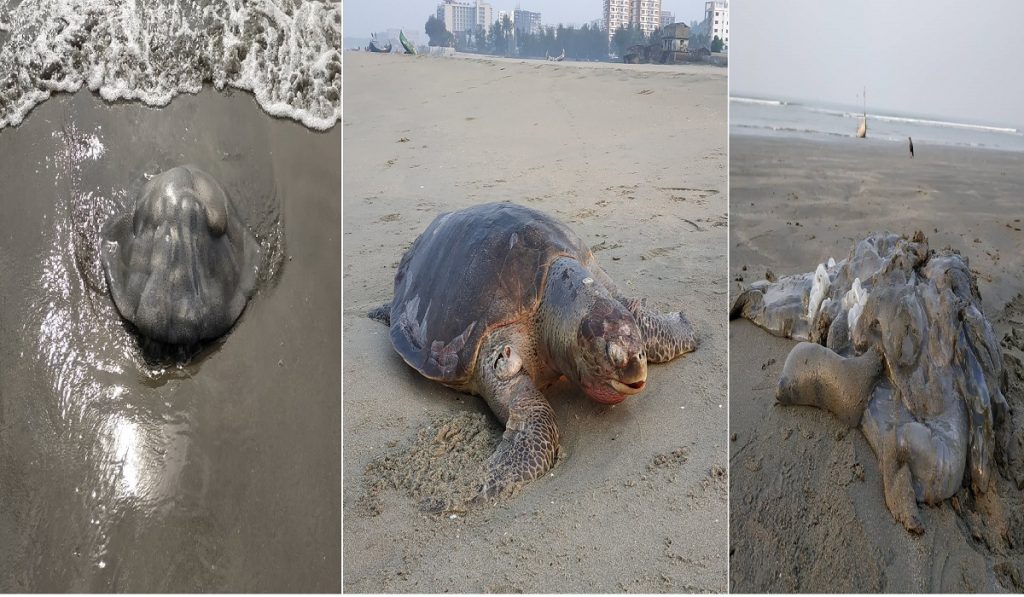 শুক্রবার কক্সবাজার কলাতলী সাগর তীরে মরে পড়ে থাকতে দেখা যায় এই বিশাল দেহী কচ্ছপ। তীরের শীতল বালিতে ডিম দিতে এসে নিজেই পড়ে গেলো মৃত্যুফাঁদে।