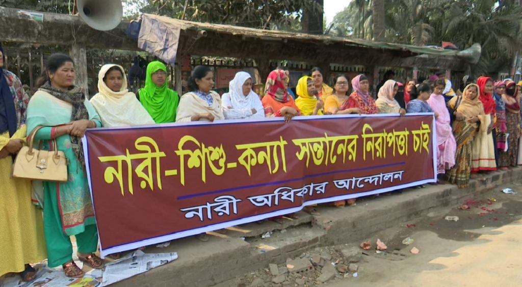 সকালে জাতীয় প্রেসক্লাবের সামনে মানববন্ধন থেকে এমন অভিযোগ করেন তারা। এসময় এই ব্যর্থতার দায়ে দায়িত্বশীলদের পদত্যাগের দাবি করেন মানববন্ধনের অংশগ্রহণকারীরা। প্রধানমন্ত্রী শেখ হাসিনা নারীদের নিরাপত্তা নিশ্চিতে পর্যাপ্ত ব্যবস্থা নেবেন বলে আশা প্রকাশ করেন বক্তারা। বিচারহীনতার সংস্কৃতির কারণে নারীর নিরাপত্তা,অধিকারসহ সব কিছুই ধ্বংসের দিকে বলেও অভিযোগ করেন তারা।