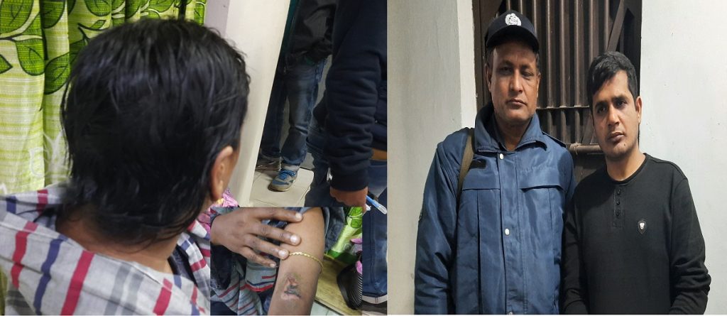 নির্যাতনের শিকার খোশ নাহার জানান, ফয়সালের গ্রামের বাড়ি আমার বাড়ি পাশাপাশি। সেখান থেকে তার সাথে আমার পরিচয়। তার সকল কু-কর্মের কারণে তার পরিবারকে গ্রাম ছাড়া করে দিয়েছে এলাকাবাসী। শনিবার দুপুরে সে তার মোবাইল থেকে ফোন করে আমাকে জানায়, তার বৌয়ের সাথে ঝগড়া হয়েছে। বিষয়টি সুরাহার জন্য সহযোগীতা চেয়ে বাসায় আসতে বলে। তারপর আমি বাড়ি থেকে রওনা দিয়ে আশুগঞ্জ উপজেলার ঢাকা-সিলেট মহাসড়কের পাশে অবস্থিত হোটেল ওজান ভাটির সামনে অবস্থান করি। সে এসে আমাকে গাড়িতে তুলে তার কাউতলীর ভাড়া বাসায় নিয়ে যায়। তারপর আমার হাত-পা বেঁধে দেয়। ভাইয়ের কাছ থেকে বিকাশের মাধ্যমে ১০ হাজার টাকাও এনে দেয়। তার কাছে থেকে নগদ চার হাজার টাকা ও মোবাইল ফোন সেট নিয়ে নেয়। খালি স্ট্যাম্পে স্বাক্ষর নেয়া হয়। আরও টাকার জন্য শুরু করা হয় নির্যাতন। তার সঙ্গে কয়েকজন মিলে মারধর করতে শুরু করে। আমি চিৎকার শুরু করলেও কেউ শুনে না। পরে আমার হাত, পা ও গলায় লোহা দিয়ে গরম ছ্যাঁকা দিতে শুরু করে। কয়েকজন চেপে ধরে আমার মাথার চুলও কেটে দেয়। এক পর্যায়ে ৯৯৯ নম্বরে কল করে শিশু অপহরনকারী আটক করা হয়েছে বলে পুলিশকে অবহিত করে। পরে পুলিশ এসে আমাকে উদ্ধার করে থানায় নিয়ে আসে। ব্রাহ্মণবাড়িয়া সদর থানার পুলিশের উপ-পরিদর্শক (এস.আই) মোতালেব হোসেন জানান, আমরা ৯৯৯ খবর পেয়ে ঘটনাস্থলে এসে আহত অবস্থায় ওই নারীকে উদ্ধার করে নিয়ে আসি। অভিযুক্ত মোস্তাক আহমেদ ফয়সালকেও আটক করে থানায় নিয়ে আসি।