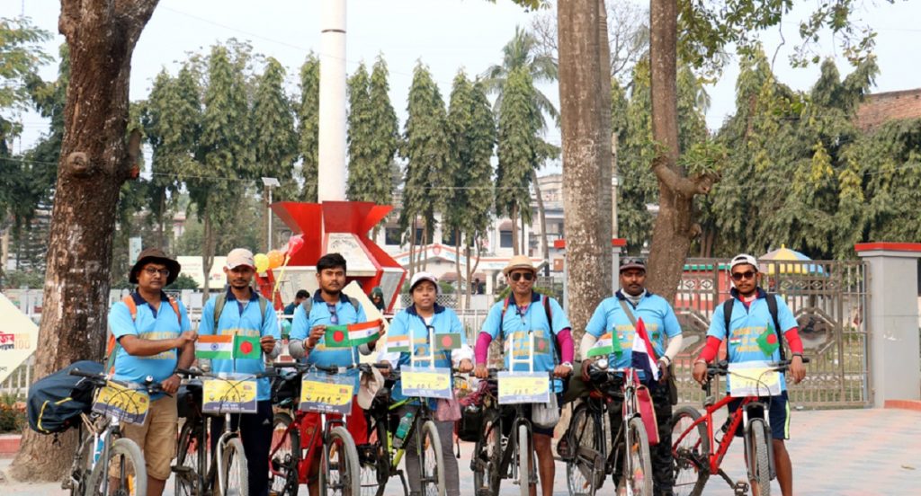 বাইসাইকলে নিয়ে বাংলাদেশ ভ্রমণের উদ্দেশ্যে গত ১৪ ফেব্রুয়ারি ভারতের পশ্চিমবঙ্গের হুগলী জেলার চন্দননগর এলাকা থেকে ৭ সদস্যের এই দলটি বাইসাইকেল নিয়ে যাত্রা শুরু করে। এই দলটির মধ্যে ছয়জন পুরুষ এবং একজন নারী সদস্য রয়েছেন। পশ্চিম বঙ্গের রানাঘাট, গেদে ও চুয়াডাঙ্গার দর্শনা চেকপোস্ট হয়ে গত ১৬ ফেব্রুয়ারি বাংলাদেশে প্রবেশ করে দলটি। সেখানে অবস্থিত শহীদ মিনারে তারা শহীদদের প্রতি শ্রদ্ধা নিবেদন করেন। পরে ওইদিন রাতে দলটি মেহেরপুরের মুজিবনগরে পৌঁছায়। ১৭ ফেব্রুয়ারি সকালে সেখানে তারা জাতির জনক বঙ্গবন্ধু শেখ মুজিবর রহমানের ভাস্কর্যে বিনম্র শ্রদ্ধা জানান।