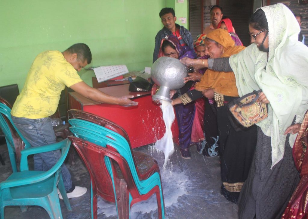দুধ দিয়ে ধুয়ে ‘পবিত্র’ করা হলো কেশবপুর আওয়ামী লীগ অফিস। হাতুড়ি-গামছা বাহিনী দীর্ঘদিন ধরে অফিসটি দখল করে তাদের আস্তানা হিসাবে ব্যবহার করে আসছিল। এর আগে ওই কক্ষ থেকে দেশিয় অস্ত্র ও ফেনসিডিল উদ্ধার করা হয়। বাহিনীর সদস্যরা গা ঢাকা দিলে মঙ্গলবার দুপুরে আওয়ামী লীগের নেতাকর্মীরা অফিসটি দখল নেন।