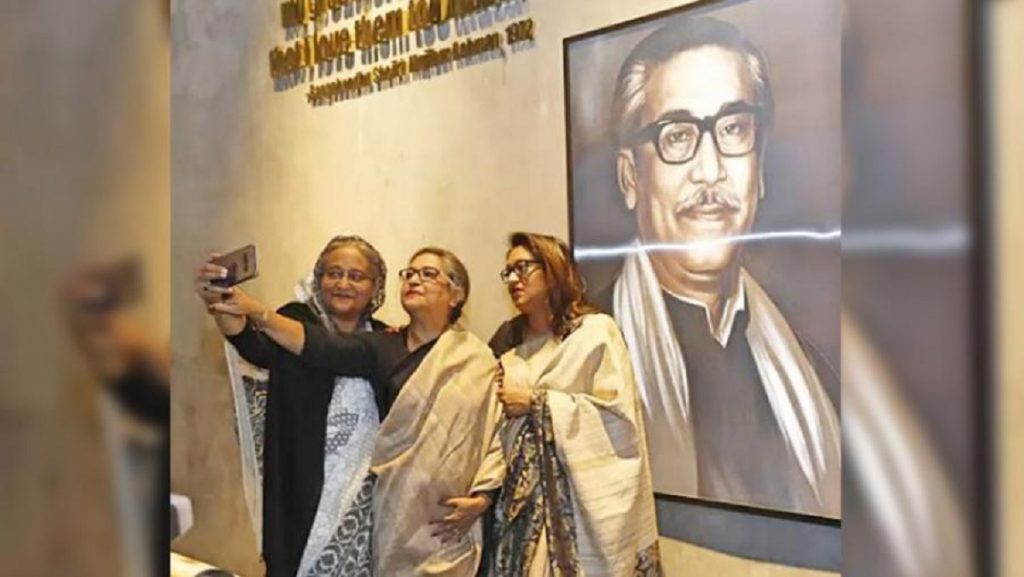 প্রদর্শনীতে এসে বিভিন্ন চিত্রকর্ম ও আলোকচিত্র দেখার পাশাপাশি প্রধানমন্ত্রী শেখ মুজিবুর রহমানের প্রতিকৃতির সামনে দাঁড়িয়ে বোন রেহানা ও মেয়ে সায়মা ওয়াজেদকে নিয়ে সেলফি তোলেন।