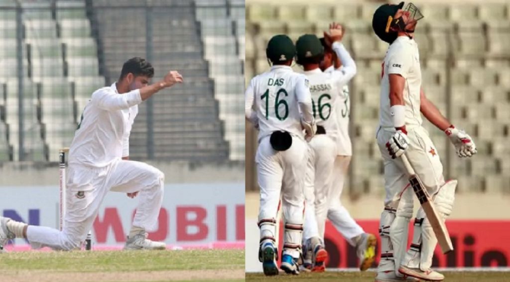 উইকেটে থাকা হালকা ঘাসের সুবিধাটা সকাল সকালই তুলে নেওয়ার চেষ্টা করেছেন ইবাতদ হোসেন-আবু জায়েদ। প্রথম সেশনে উইকেট বেশি না পড়লেও জিম্বাবুয়ের ব্যাটসম্যানদের অস্বস্তিতে রেখেছিলেন দুই পেসার। নিয়ন্ত্রিত লাইন-লেংথে বল করেন দুজন। প্রথম সেশনে ১ উইকেটে ৮০ রান তুলেছে জিম্বাবুয়ে। দ্বিতীয় সেশনে বাংলাদেশকে উইকেট এনে দেন নাঈম। তার বলে তিনটি ক্যাচ দিয়েছিলেন জিম্বাবুয়ে ওপেনার প্রিন্স মাসভোরে। নাঈম নিজেও তাঁর একটি ক্যাচ ফসকেছেন। শেষ পর্যন্ত এই নাঈমই ৬৪ রান করা মাসভোরেকে ফিরিয়েছেন। পরের ওভারেই তাকে রিভার্স সুইপ করতে গিয়ে স্টাম্পে বল টেনে এনেছেন ব্রেন্ডন টেলর (১০)।