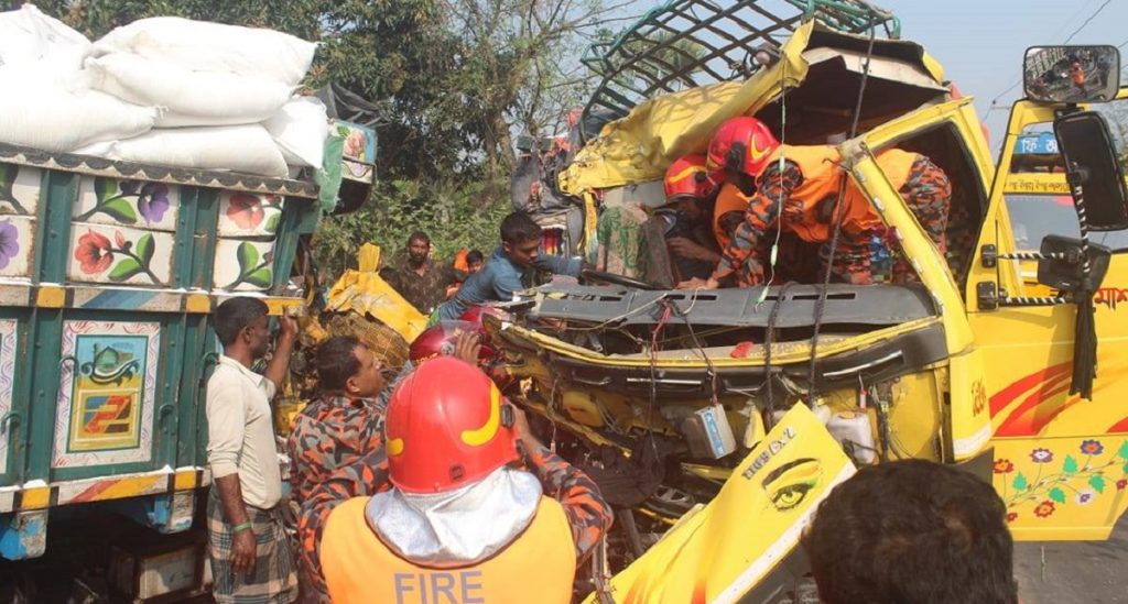 তিনি আরও জানান, খুলনাগামী বালিভর্তি একটি ট্রাকের সাথে কুষ্টিয়া অভিমুখে আসা সারভর্তি একটি ট্রাকের মধ্যে এই হতাহতের ঘটনা ঘটে। এখন পর্যন্ত হতাহতদের নাম পরিচয় নিশ্চিত করতে পারেননি হাইওয়ে পুলিশের এই কর্মকর্তা। তবে হতাহতরা দুর্ঘটনা কবলিত দুই ট্রাকের ড্রাইভার হেলপার বলে ধারণা করা হচ্ছে।