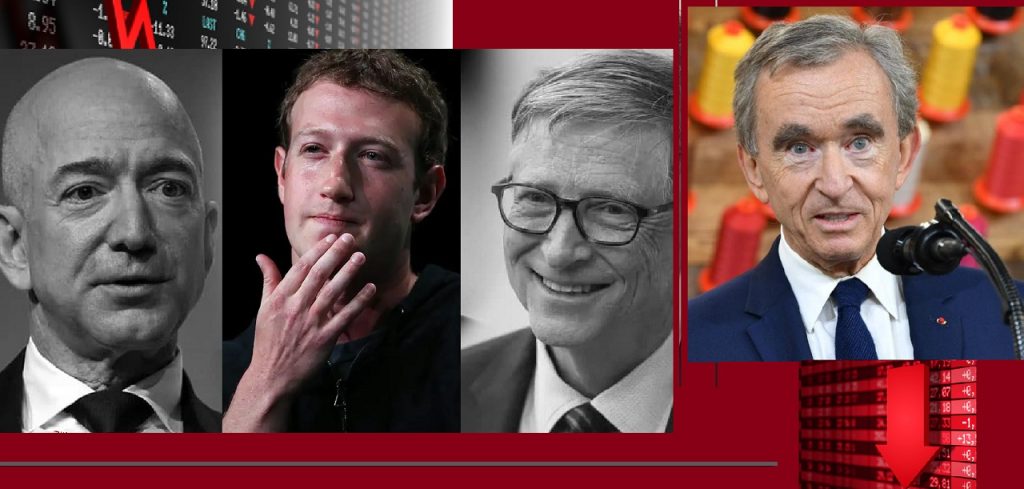 সোমবার একদিনে বিশ্বের শীর্ষ ১০ ধনীর ৯ জনের সম্পদ কমেছে ১০০ কোটি ডলারের ওপরে। টাকার অঙ্কে ও হারে সবচেয়ে বেশি সম্পদ কমেছে বিলাসবহুল পণ্য নির্মাতা বার্নার্ড আরনল্টের। একদিনে প্রায় ৬০০ কোটি ডলার নেই হয়ে গেছে তার! যা তার মোট সম্পদমূল্যের ৬ শতাংশ। তিনি প্যারিসভিত্তিক এলভিএমএইচের প্রধান নির্বাহী এবং বিশ্বের তৃতীয় শীর্ষ ধনী।