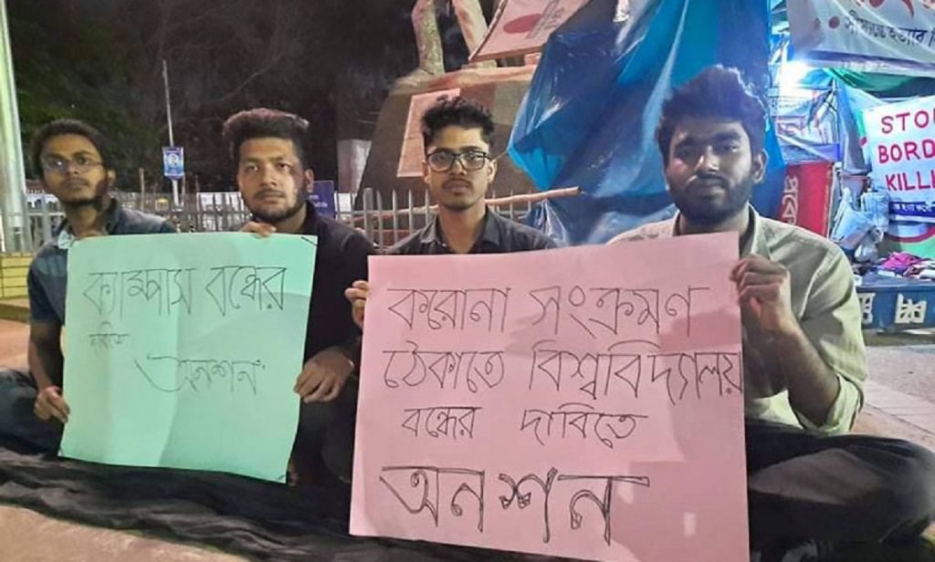 শিক্ষার্থীরা বলেন, ঢাকা বিশ্ববিদ্যালয়ের কোনো শিক্ষার্থী করোনায় আক্রান্ত হয়ে পড়লে তা দ্রুত ছড়িয়ে পড়ার শঙ্কা আছে। আর তাই এ ভাইরাসের প্রাদুর্ভাব মোকাবেলায় অবিলম্বে বিশ্ববিদ্যালয় বন্ধ ঘোষণার করার দাবি জানান তারা। দাবি আদায় না হওয়া পর্যন্ত অনশন চালিয়ে যাওয়ার ঘোষণা দেন এই পাঁচ শিক্ষার্থী।