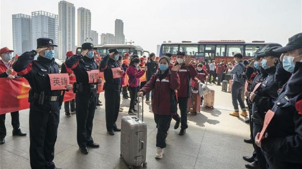 চীনের হুবেই প্রদেশের উহান শহরের স্বাস্থ্যকর্মীরা দীর্ঘ দুই মাসেরও বেশি সময় ধরে করোনাভাইরাসের বিরুদ্ধে লড়াই করে বিজয়ীর বেশে ঘরে ফিরতে শুরু করেছেন।
