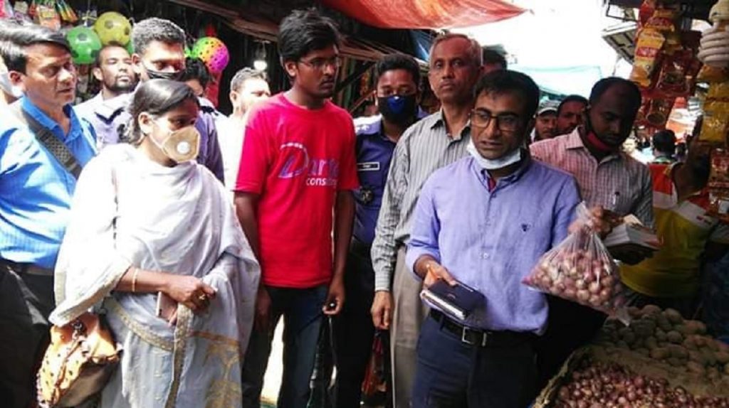 এসময় নির্বাহী ম্যাজিস্ট্রেট মাহবুবুল ইসলাম, ম্যাজিস্ট্রেট ইবনে আল জায়েদ হোসেন, জেলা স্যানিটারি ইন্সেপেক্টর মহিউদ্দিন আল মাসুদ ও জেলা মার্কেটিং অফিসার নুরুন্নাহার বেগম এর সমন্বয়ে সদর উপজেলার নিঊমার্কেটে ৭ টি ও কলাতলা বাজারে ৩টি দোকানে বেশি দামে ও ভেজাল দ্রব্য বিক্রির দায়ে গাজী বাবুলের মুদী দোকানে ২ হাজার টাকা, শওকতের মুদী দোকানে ২ হাজার টাকা, দেলোয়ারের মুদী দোকানে ৫ হাজার টাকা, কবিরের পাইকারী দোকানে ৩০ হাজার টাকা, মকবুল ফকিরের মাছের দোকানে ৫ হাজার টাকা, রুহুল আমিনের আলুর দোকানে ২ হাজার টাকা, মহিববুল্লাহর মুদী দোকানে ৩ হাজার টাকা, আবুল বাশারের দোকানে ১০ হাজার টাকা, পান্নার দোকানে ২০ হাজার টাকা ও মনিরুজ্জামানের দোকানে ১৫ হাজার টাকা এবং সদর ইউএনও লতিফা জান্নাতীর নেতৃত্বে পুরান বাজার ১টি দোকানে বেশি টাকায় দ্রব্য বিক্রির দায়ে ১০ হাজার টাকা জরিমানা আদায় করা হয়। এছাড়া মনিরুজ্জামানের দোকানে ১৫ হাজার টাকা জরিমানা আদায় করা হয়।
