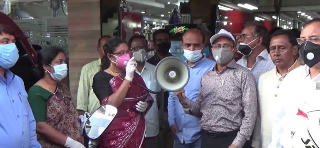 রোবরার বিকেলে শহরের পশ্চিম বাজার এলাকায় করোনা প্রতিরোধ ও জনসচেতনতা সৃষ্টির লক্ষ্যে মাইকিং করেছেন জেলা প্রশাসক নাজিয়া শিরিন ও সদর উপজেলা নির্বাহী কমকর্তা শরিফুল ইসলাম। ব্যবসায়ীদের রাত ৮ টার পর দোকান ও ব্যবসা প্রতিষ্ঠান বন্ধ রাখার অনুরোধ জানান জেলা প্রশাসক। পরে ব্যবসায়ীদের মাঝে মাস্ক ও সাবান বিতরণ করেন তারা।