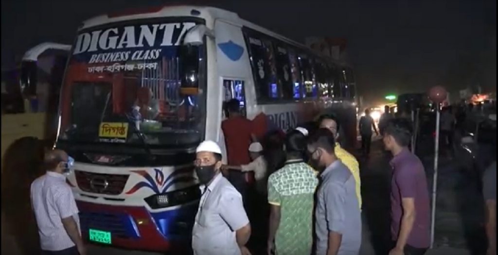 পুলিশ জানায়, দিগন্ত পরিবহণের এই বাসটি খুব কম সংখ্যক যাত্রী নিয়ে ঢাকার উদ্দেশে রওনা দেয়। হবিগঞ্জের শায়েস্তাগঞ্জ থেকে ইমদাদুল হক ঢাকা যাওয়ার জন্য এই বাসে ওঠেন। ঢাকা যাওয়ার পথে নরসিংদীর বারৈচা এলাকায় পৌঁছালে যাত্রীরা তাকে বাসের মধ্যে মৃত অবস্থায় পড়ে থাকতে দেখে। পরে বাসের হেলপার ঢাকা কাউন্টারে যোগাযোগ করে ঢাকা নিয়ে যাওয়ার জন্য চেষ্টা করে। এসময় পুলিশ খবর পেয়ে নরসিংদীর শাহেপ্রতাব মোড়ে বাসটিকে আটক করে।