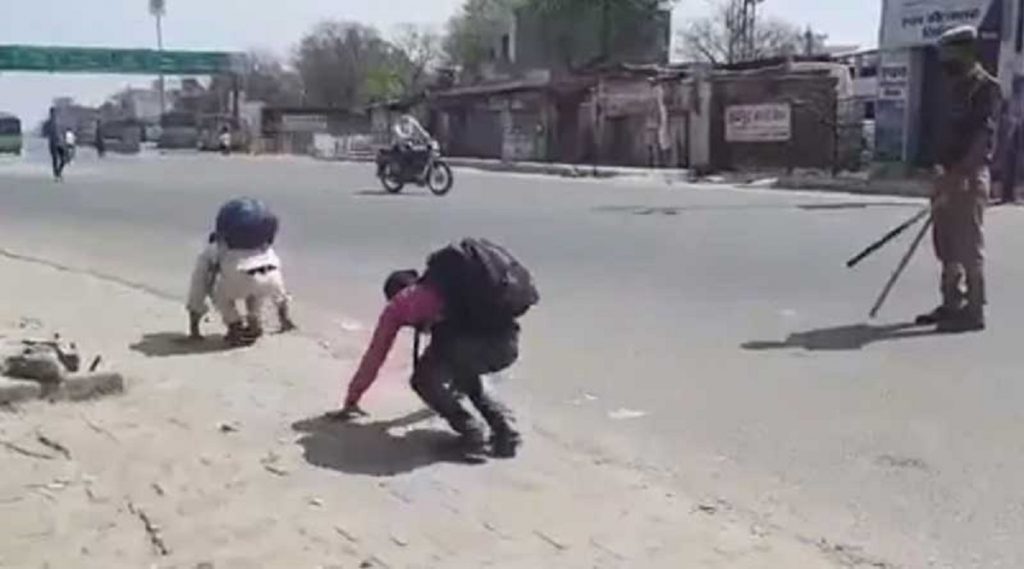 জানা যায়, একদল শ্রমিক বাড়ি ফিরছিলেন। সেইসময় রাস্তায় পুলিশ কর্মীরা তাঁদের আটকায়। কোনও কথা না শুনে তাঁদের অপমান করতে শুরু করে। এমনকী ভারী ব্যাগ নিয়ে রাস্তায় হামাগুড়ি দিতে বাধ্য করা হয়। এ ঘটনা ঘটে ভারতের উত্তর প্রদেশে। এ ঘটনায় অবশ্য পুলিশ ক্ষমা চায়।
