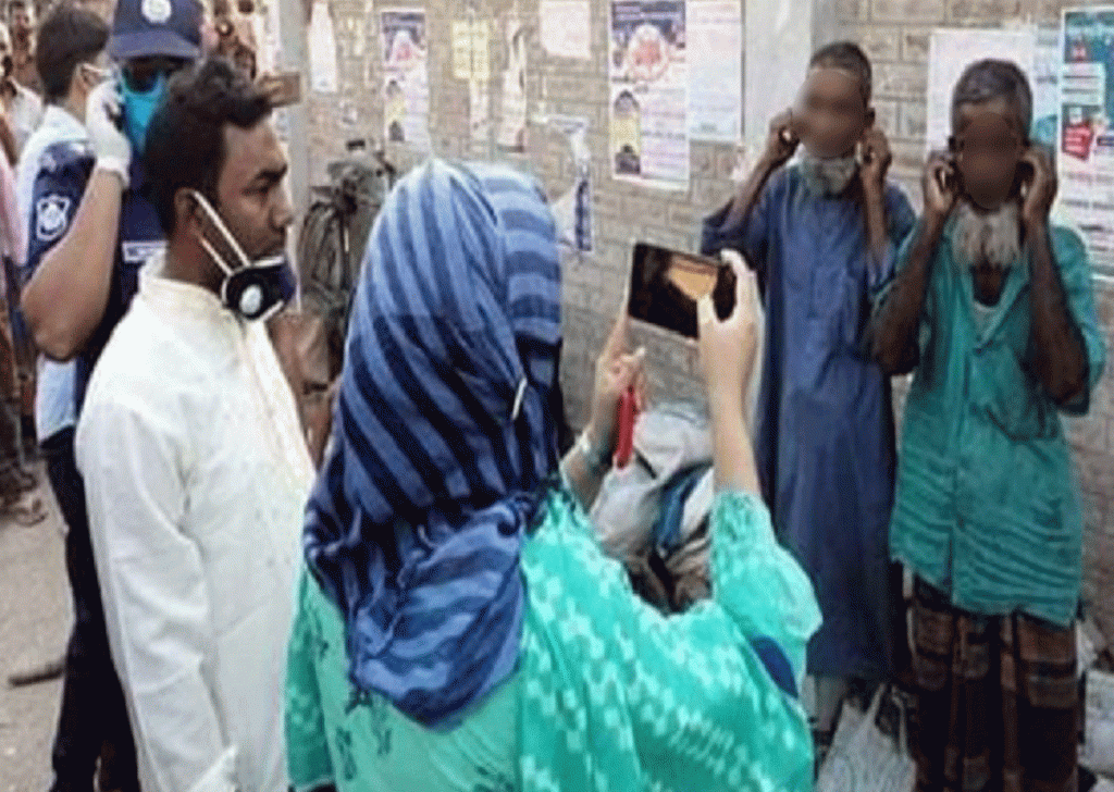 মাস্ক না পরার দায়ে কিনা তিন বৃদ্ধকে কান ধরিয়ে দাঁড় করিয়ে রাখলো ভ্রাম্যমাণ আদালত। শুক্রবার বিকেলে যশোরের মনিরামপুরে ম্যাজিস্ট্রেট সাইয়েমা হাসানের ভ্রাম্যমাণ আদালত এ সাজা দেয়। শুধু তাই নয়, কান ধরিয়ে দাঁড় করিয়ে রাখার পর নির্বাহী ম্যাজিস্ট্রেট নিজে ওই চিত্র তার মোবাইলে ধারণ করেন। রাতে এ ছবি সামাজিক যোগাযোগ মাধ্যম ফেসবুকে ছড়িয়ে পড়লে সামলোচনার ঝড় ওঠে।