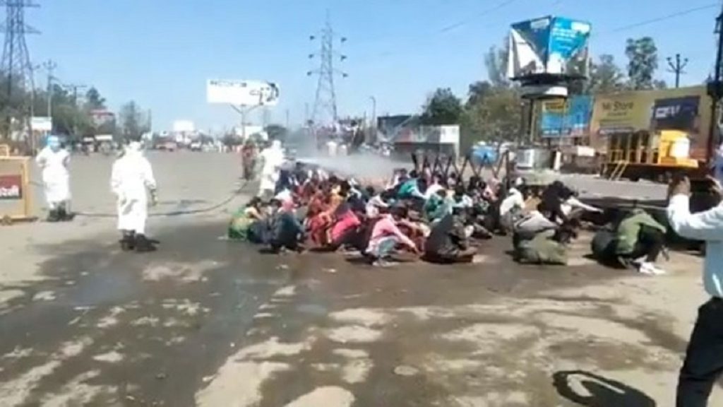 সরকারের দেওয়া বাসে করে গতকাল দিল্লি, হরিয়ানা ও নয়ডা থেকে এক দল শ্রমিককে নিয়ে আসা হয়েছিল। বরেলীর একটি চেক পয়েন্টে পৌঁছনোর পরে তাঁদের বাড়ি যেতে দেওয়া হয়নি। স্যাটেলাইট বাসস্ট্যান্ডের কাছে রাস্তার ধারে শিশু থেকে বৃদ্ধ সকলকে উবু হয়ে বসিয়ে জীবাণুনাশক রাসায়নিকে স্নান করানো হয়। পুলিশ এবং স্বাস্থ্য দফতরের কর্মীদের উপস্থিতিতেই গোটা ঘটনাটি ঘটেছে। ভিডিও তে এক পুলিশকর্মীকে বলতে শোনা গিয়েছে, “চোখ বন্ধ করো। বাচ্চাদের চোখ ঢেকে রাখো।”