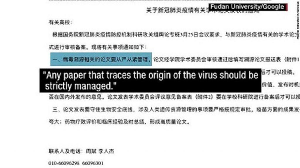 করোনাভাইরাসের উৎপত্তি নিয়ে গবেষণা করছিলো চীনের দুইটি বিশ্ববিদ্যালয়। তারা অনলাইনে এ বিষয়ে নোটিশও প্রকাশ করেছিলো। কিন্তু বাদ সাধলো দেশটির সরকার। তারা করোনার উৎপত্তি নিয়ে প্রাতিষ্ঠানিক গবেষণা প্রকাশের উপর বিধিনিষেধ আরোপ করেছে। গবেষণা প্রকাশ নিষিদ্ধ করেছ। এরপরই বিশ্ববিদ্যালয় দুইটি তাদের অনলাইন নোটিশ সরিয়ে ফলে। এ খবর দিয়েছে সিএনএন।